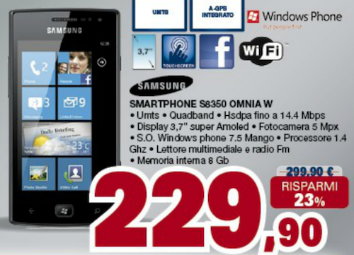 Tra le varie offerte vi segnalo il Samsung Omia W a 229 euro.