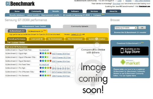 Nel sito GLBecnchmark sono finiti i primi benchmark del terminale Samsung GT-i9300, il maggior inidiziato a prendere il nome di Galaxy S III.