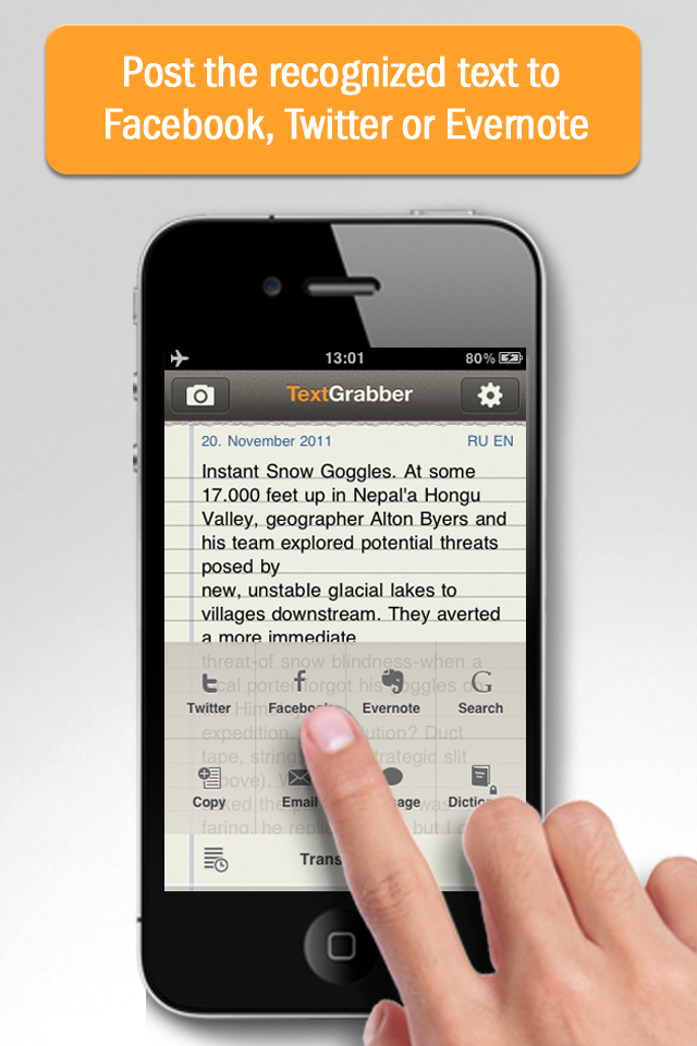Textgrabber è un’applicazione che in poche parole ci consente di acquisire porzioni di testo direttamente da libri, giornali, riviste ecc in oltre 60 lingue utilizzando direttamente la fotocamera del nostro IPhone! Vediamo ora insieme un comunicato ufficiale che ci mostra 12 consigli per utilizzare al meglio l’applicazione in questione: