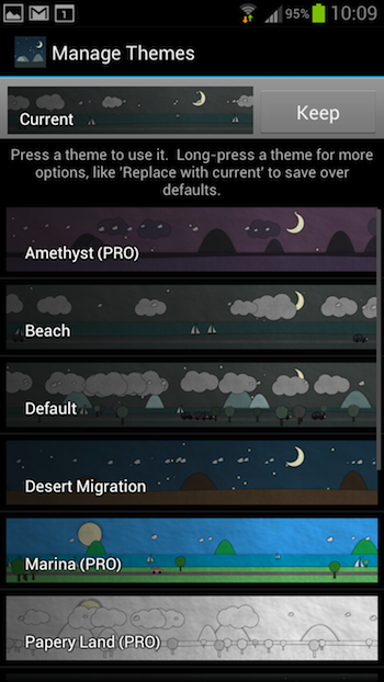La versione gratuita permette la scelta di 3 diversi temi non sarà possibile personalizzare gli oggetti presenti nello sfondo.