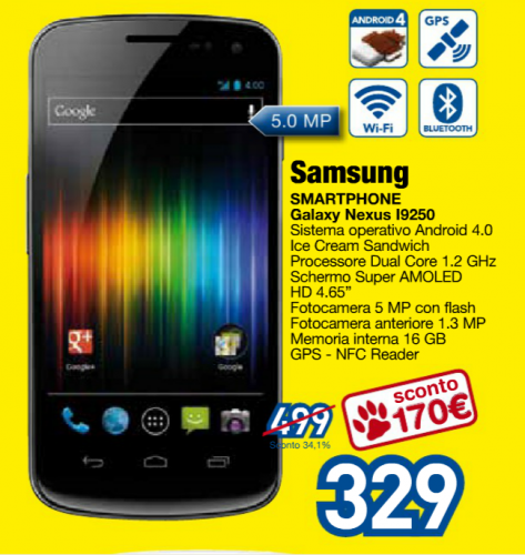 Samsung Galaxy Nexus arriva sottocosto nei negozi Euronics del gruppo Butali ( Toscana, Liguria, Lazio)