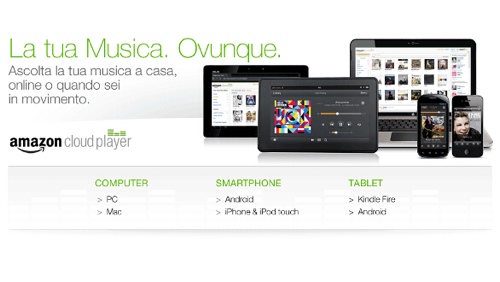 Amazon Cloud Player permette ai clienti di archiviare in tutta sicurezza la musica su Cloud e di riprodurla su qualsiasi dispositivo, sia esso Kindle Fire HD, Kindle Fire, smartphone Android, tablet Android, iPhone, iPod touch, Mac o PC, ovunque ci si trovi. I clienti possono scoprire Cloud Player alla pagina web http://www.amazon.it/cloudplayer, dove facilmente importare la propria musica utilizzando la tecnologia “scan and match”. Le librerie musicali su iTunes e Windows Media Player vengono confrontate e riconosciute in automatico con i milioni di brani presenti nel catalogo musicale di Amazon.
