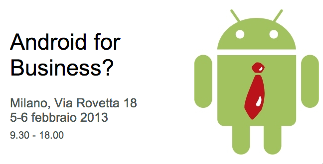 I giorni 5 e 6 Febbraio a Milano ci sarà un seminario dedicato all’ utilizzo di Android nell’ ambiente business.