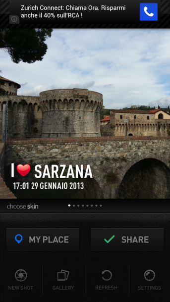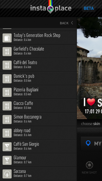InstaPlace permette di aggiungere ad una foto appena scattata, oppure presa dalla nostra galleria, delle apposite scritte con la nostra località.