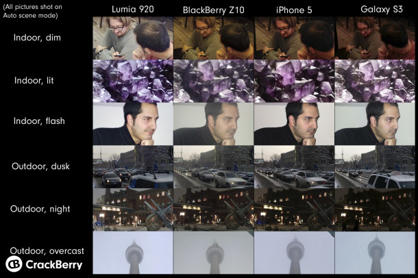 Anche qui il sensore del Lumia 920 restituisce immagini migliori, bene iPhone 5 ed S3 ma solo appena sufficienti (e sono stato buono) gli scatti del nuovo BB Z10.