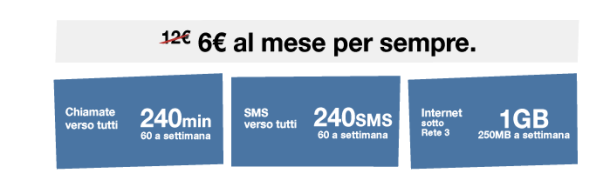 Il costo è scontato per sempre solo per chi passa a “3” e tiene il suo numero entro il 31 maggio 2013. Verrà scalato il costo del piano settimanalmente.