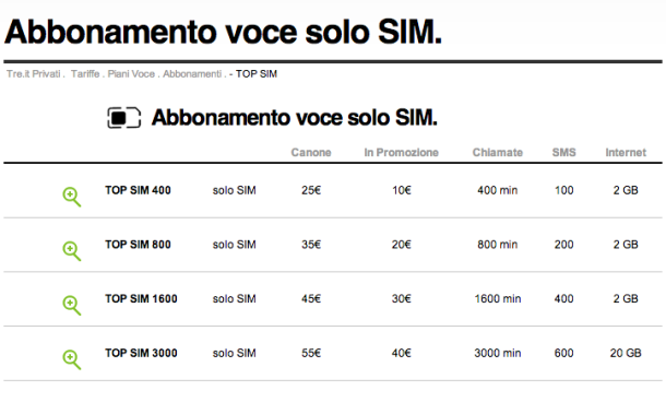Nel canone mensile non è inclusa la Tassa di concessione governativa pari a 5.16€ per uso personale e 12.91€ per uso affari.