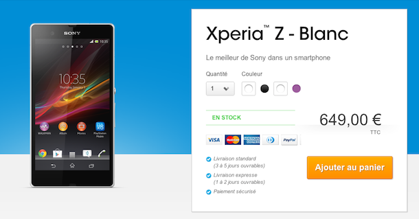 Il nuovissimo Sony Xperia Z è disponibile da poche ore nello store Online di Sony Francia.