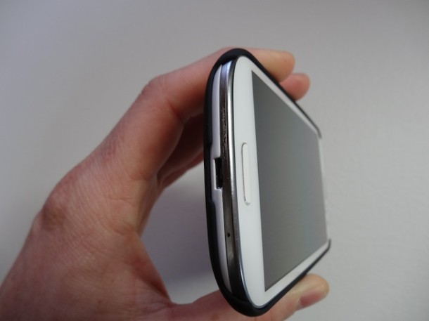 La cover abbraccia il Samsung galaxy S III ai lati ma lascia scoperta la parte superiore e inferiore.