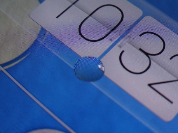 Eccovi una foto con una goccia di acqua sul display.