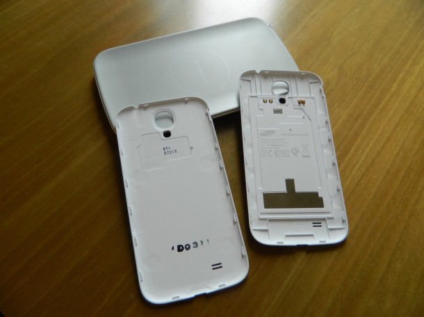 Kit per ricarica Wireless €99,90 disponibilità Maggio. La cover che vedete a sinistra è quella del Galaxy S4 appena uscito dalla vostra confezione mentre quella a destra è quella fornita insieme al caricatore wireless, pultroppo aumenta di mezzo mm lo spessore (nulla di preoccupante) di seguito la differenza di spessore tra un s4 con ricarica wireless ed uno no: