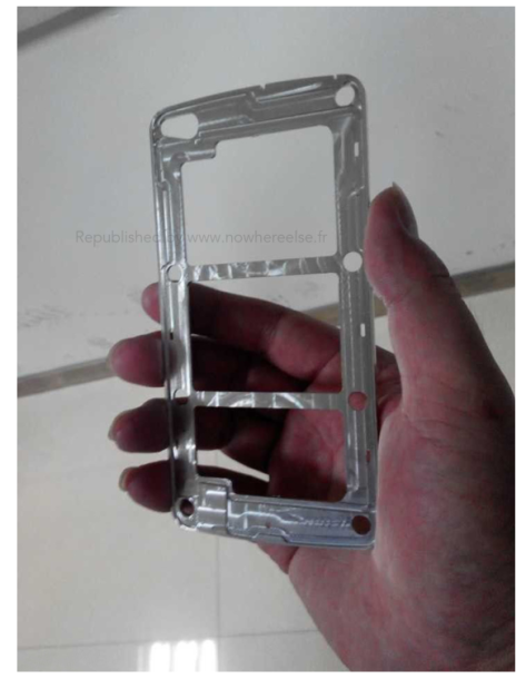 Detto questo, in rete spunta la foto di una cornice metallica che secondo il sito Nowhereelse.fr appartiene al Galaxy S 5.