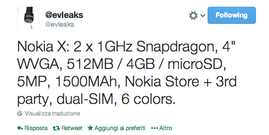 Il nome del dispositivo è Nokia X, vediamo la scehda tecnica!