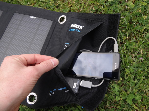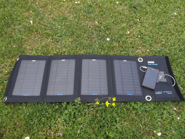 Inoltre è possibile utilizzarlo anche per caricare le batterie portatili, come ad esempio la ottima Batteria Anker Astro3 da 10.000 mAh. Chiaramente i tempi di ricarica saranno piuttosto lunghi, circa 6/8 ore di sole pieno.