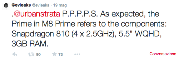 Il famoso leaker nei giorni scorsi si è scontrato via twitter con un dirigente Htc (Jeff Gordon) e stimolato da questo battibecco, ha iniziato a cinguettare diverse informazioni riguardanti Htc One M8 Prime.
