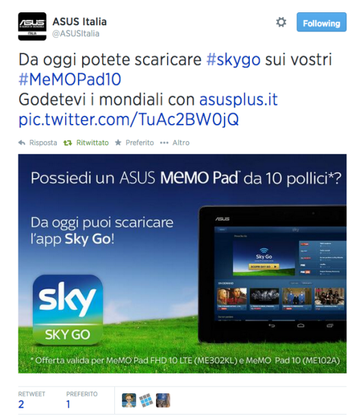 A sorpresa, Asus Italia ha twittato una notizia davvero interessante per i possessori del tablet MemoPad 10.