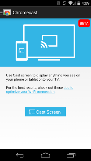 La nuova funzione di mirroring dello schermo è abilitabile direttamente dall’applicazione Chromecast e, al momento, sembra che la trasmissione avvenga tramite la rete WIFI a cui siamo connessi (e non viene quindi creata una nuova rete da uno dei due dispositivi).