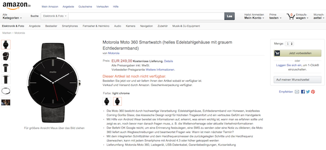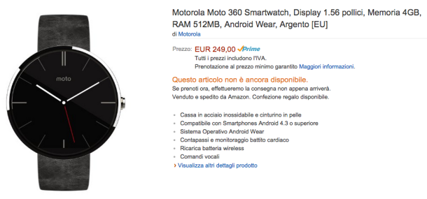 - Motorola Moto 360 su Amazon Italia a 249 euro