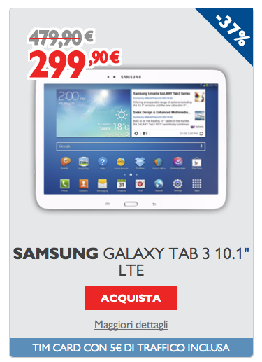Samsung Galaxy tab 3 10.1 LTE a 299 euro
