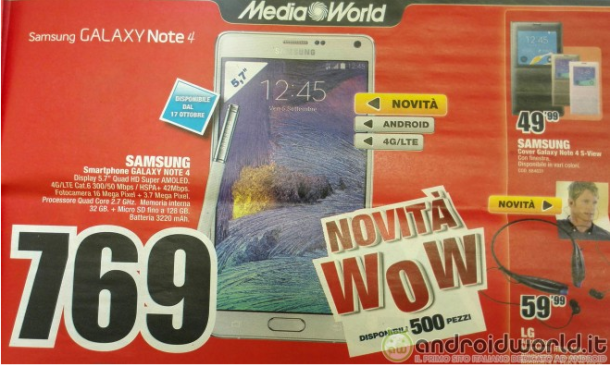 Il re dei phablet arriverà in Italia (da Mediaworld) il 17 Ottobre 2014.