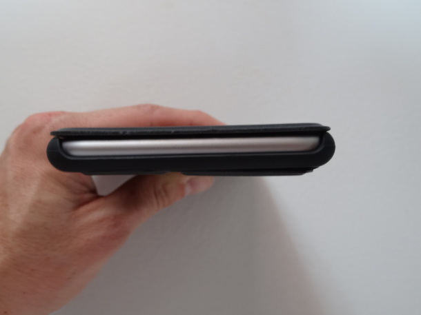 La scocca della custodia è in policarbonato rigido ed è di ottima qualità. Al tatto risulta solida e poco “scivolosa” e una volta chiusa, protegge quasi interamente il nostro amato melafonino.