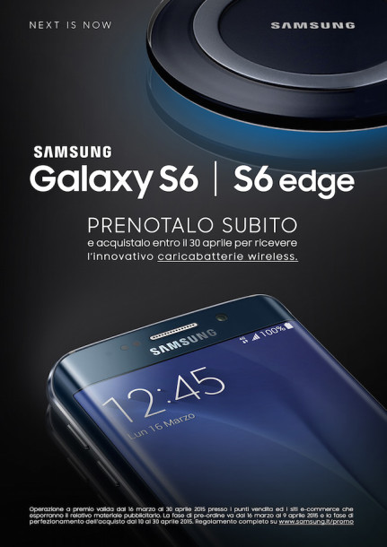 Chi finalizzerà l’ordine di acquisto tra il 10 e il 30 di aprile, riceverà in omaggio Wireless Charger Kit, l’esclusivo caricabatteria wireless, e potrà provare per primo la funzione “ricarica wireless integrata” per Galaxy S6 e Galaxy S6 edge.