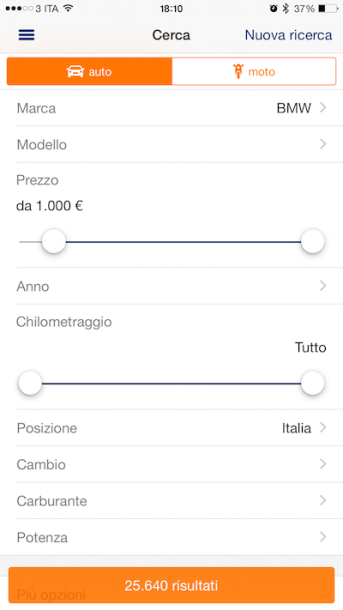 A questo punto l’ applicazione è impostata per cercare le BMW usate nella zona di Roma. (Questo il link alla pagina del sito desktop).