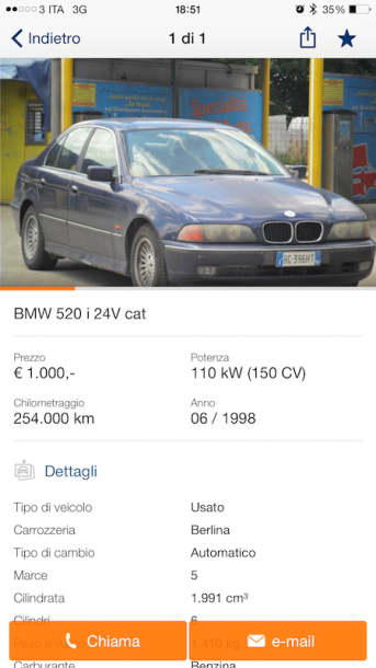 In basso ci sono due icone che ci permettono di chiamare il venditore o inviare una mail.