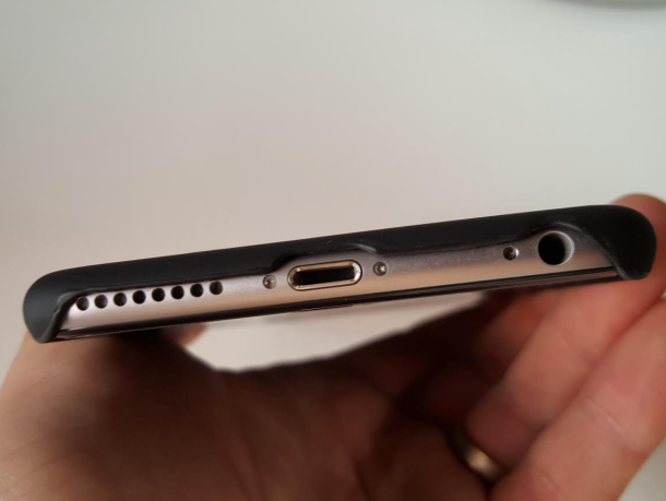 La cover avvolge il nostro iPhone 6 Plus quasi completamente, lasciando scoperta solo la parte inferiore. La sporgenza della fotocamera viene azzerata dallo spessore della cover.