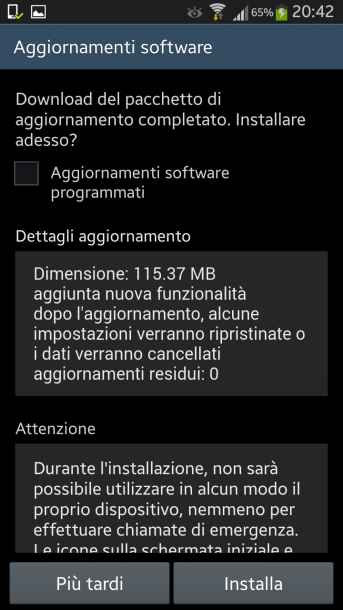 Il peso è di 115 mb, la versione di Android rimane la 4.3.