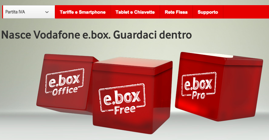 Vodafone presenta e.box e punta su 3 pacchetti integrati e convergenti, costruiti sulla base dei bisogni dei Clienti Partita IVA, siano essi professionisti, artigiani, negozianti o piccole aziende.