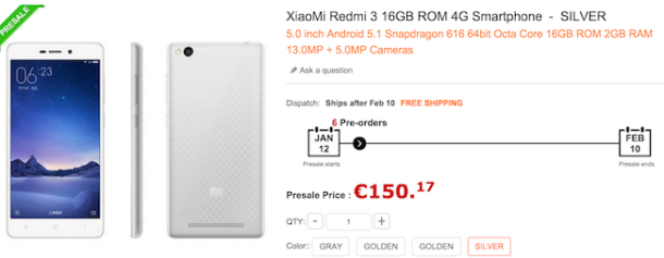 Vi ho parlato del nuovo Xiaomi Redmi 3 giusto due giorni fa, ed eccolo in prenotazione su Gearbest.