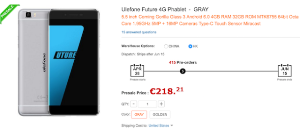 Ulefone Future 4G è in prevendita su Gearbest al prezzo attuale di 218 euro e lo trovate a questo link.