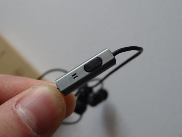 Il filo è in plastica e troviamo un comodissimo microfono con un pulsante multiuso (in alluminio) che permette di rispondere alle chiamate e avviare o mettere in pausa il brano che stiamo ascoltando.