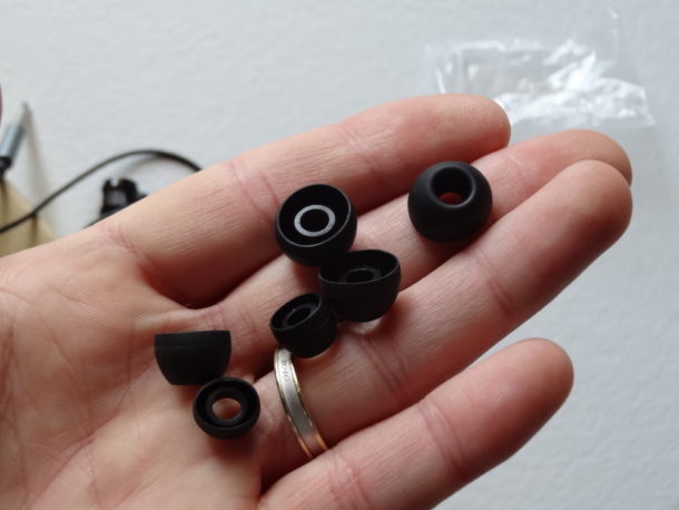Nella confezione troviamo, oltre agli auricolari, diversi adattatori in ear di tre misure diverse.