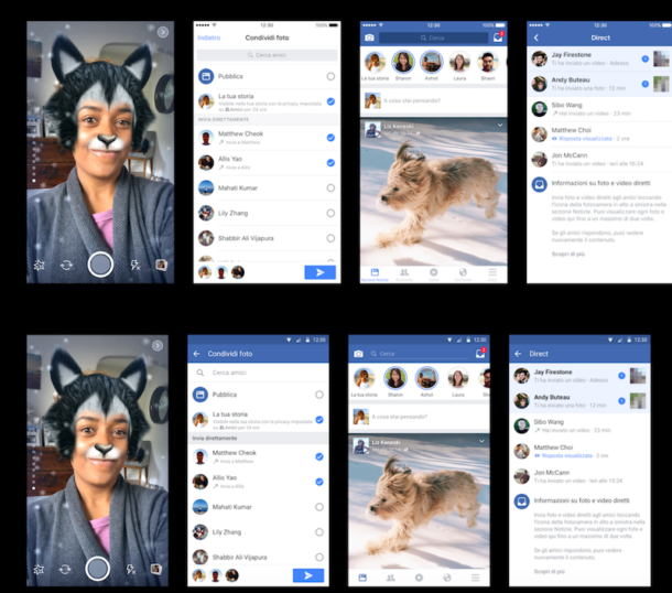 Così Facebook ha voluto aggiornare la propria fotocamera, per offrire alle persone un’esperienza migliore – non solo rendendo più facile creare foto e video divertenti direttamente dall’app di Facebook, ma anche offrendo più opzioni per condividerli.
