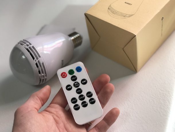 Con il telecomando possiamo accendere e spegnere la lampada, controllare i brani, cambiare colore alla luce e tanto altro!