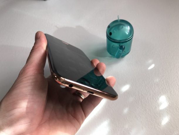 In basso troviamo il jack audio, la porta Micro USB e il forellino per il microfono.