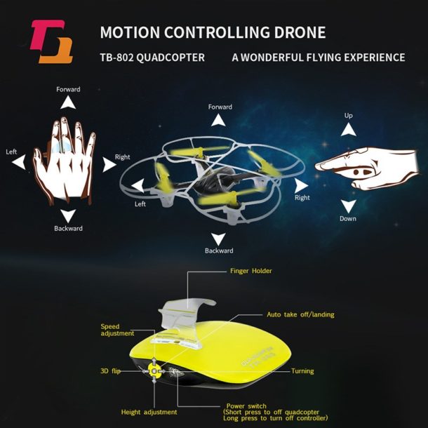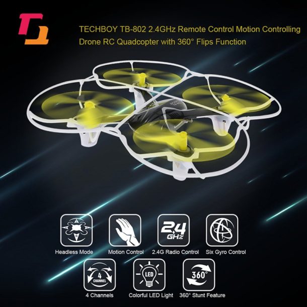 TECHBOY TB-802 è un drone quadricottero dalle dimensioni contenute, che si controlla in modo semplice ed immediato, grazie allo speciale “mouse” e al movimento delle nostra mano!