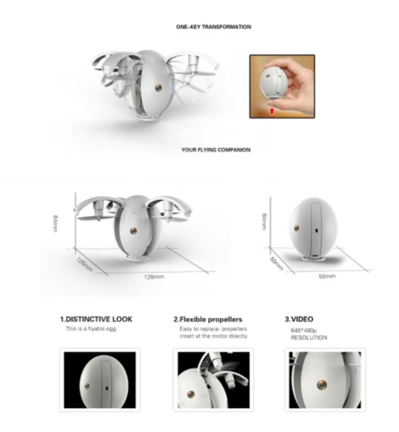 Basta una semplice pressione per aprire le 4 braccia e trasformare questo “ovetto” in un drone pilotabile con lo smartphone.