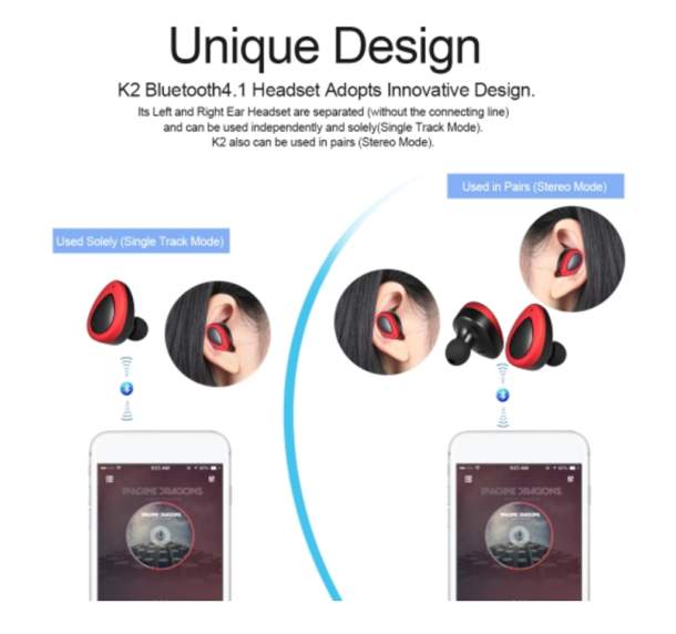 Gli auricolari TWS-K2 utilizzano il bluetooth 4.1 per collegarsi al vostro smartphone.