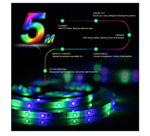E giusto per rimanere in tema e non farsi cogliere impreparati, oggi vi suggerisco una bella striscia a LED RGB lunga 5 Metri e dotata di telecomando, in super offerta a soli 6,50 euro.