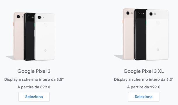 Si parte da 899 euro per il Pixel 3 e 999 euro per il Pixel 3 XL.