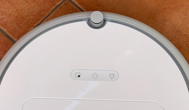 Il tasto a sinistra avvia la pulizia spot (effettua un’aspirazione di circa un metro quadrato, girando su se stesso)
