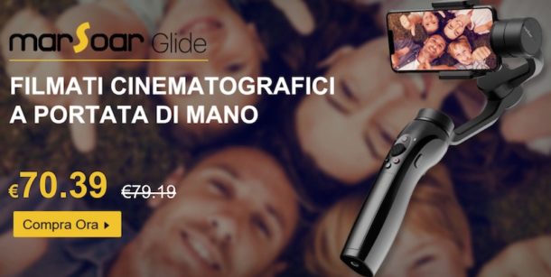 Arriva da Gearbest una interessante promozione che riguarda il nuovo gimbal MARSOARE GLIDE, un oggettino assai interessante che vi permette di effettuare riprese cinematografiche semplicemente con il vostro smartphone.