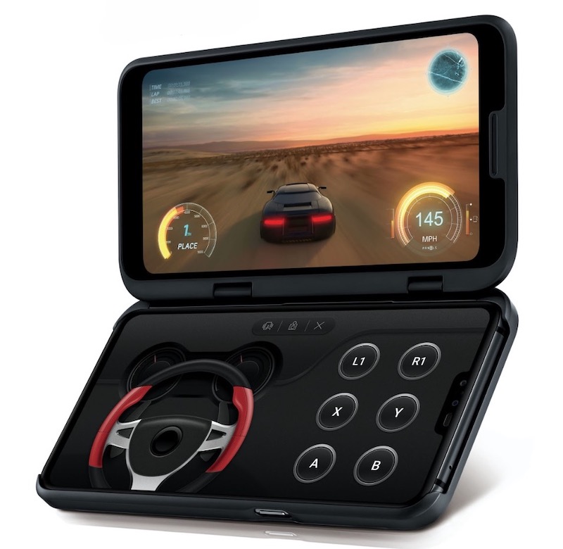 Quando il Dual Screen è collegato, sul display di LG V50ThinQ 5G viene visualizzata un’icona utile per attivare il secondo display o passare facilmente dall’uno all’altro. Nei videogiochi che supportano il controller wireless, il secondo schermo può essere utilizzato come joypad touch permettendo di dedicare tutto lo schermo superiore all’azione. Il doppio schermo può essere posizionato in due angolazioni (104° e 180°) ed è alimentato dalla batteria dello smartphone.