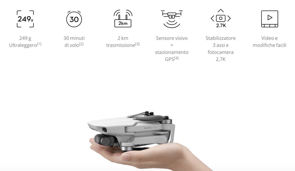 Si chiama Mavic Mini, è pieghevole, pesa solo 249 grammi, ha una batteria da 30 minuti, registra video fino a 2.7 K e costa 399€.