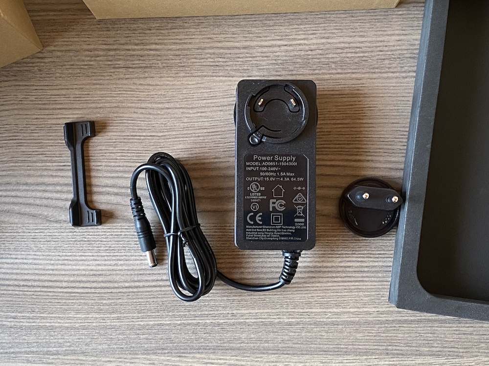 Solleviamo la base di ricarica e scopriamo un secondo scompartimento con all’interno due scatole contenenti l’alimentatore esterno e un piccolo accessorio magnetico da utilizzare come stand nel caso caricassimo un dispositivo via cavo. (Nel video vi spiego meglio a cosa serve).
