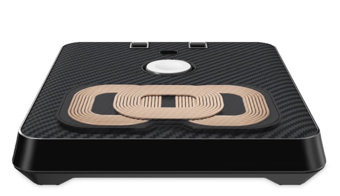 L’azienda è PITAKA, il materiale utilizzato è fibra di aramide e l’oggetto in questione è il meraviglioso AIR OMNI, una stazione di ricarica wireless e cablata in grado ricaricare fino a 6 dispositivi in contemporanea.