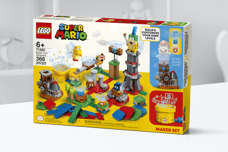 Tra i nuovi set, c’è Costruisci la tua avventura – Maker Pack, una cassetta degli attrezzi creativa, che permette ai bambini di personalizzare completamente la costruzione di LEGO Super Mario, il tempo di gioco e i modi per guadagnare monete. Utilizzando la Customisation Machine inclusa nel Maker Pack, i bambini possono cambiare il modo in cui LEGO Mario reagisce a tre Special Bricks, offrendo nuove possibilità di gioco, con tante emozioni e sorprese. Il Maker Pack introduce anche un nuovo tubo di partenza speciale che rimescolerà le regole del gioco, in quanto i giocatori sono sfidati a raggiungere il palo della porta in meno tempo, ma con maggiori ricompense in palio. Il Maker Pack è composto di 366 pezzi, tutti selezionati per garantire che i bambini possano liberare la loro creatività e personalizzare i loro livelli per se stessi o per gli altri giocatori.